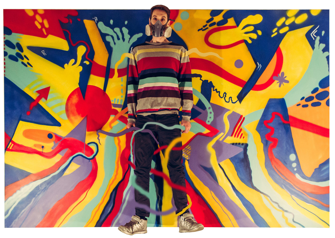 While painting the Background for a commissioned work I asked my friend and photographer Richard Lürzer to document the process. We had a lot of fun and these two fascinating pictures came out.