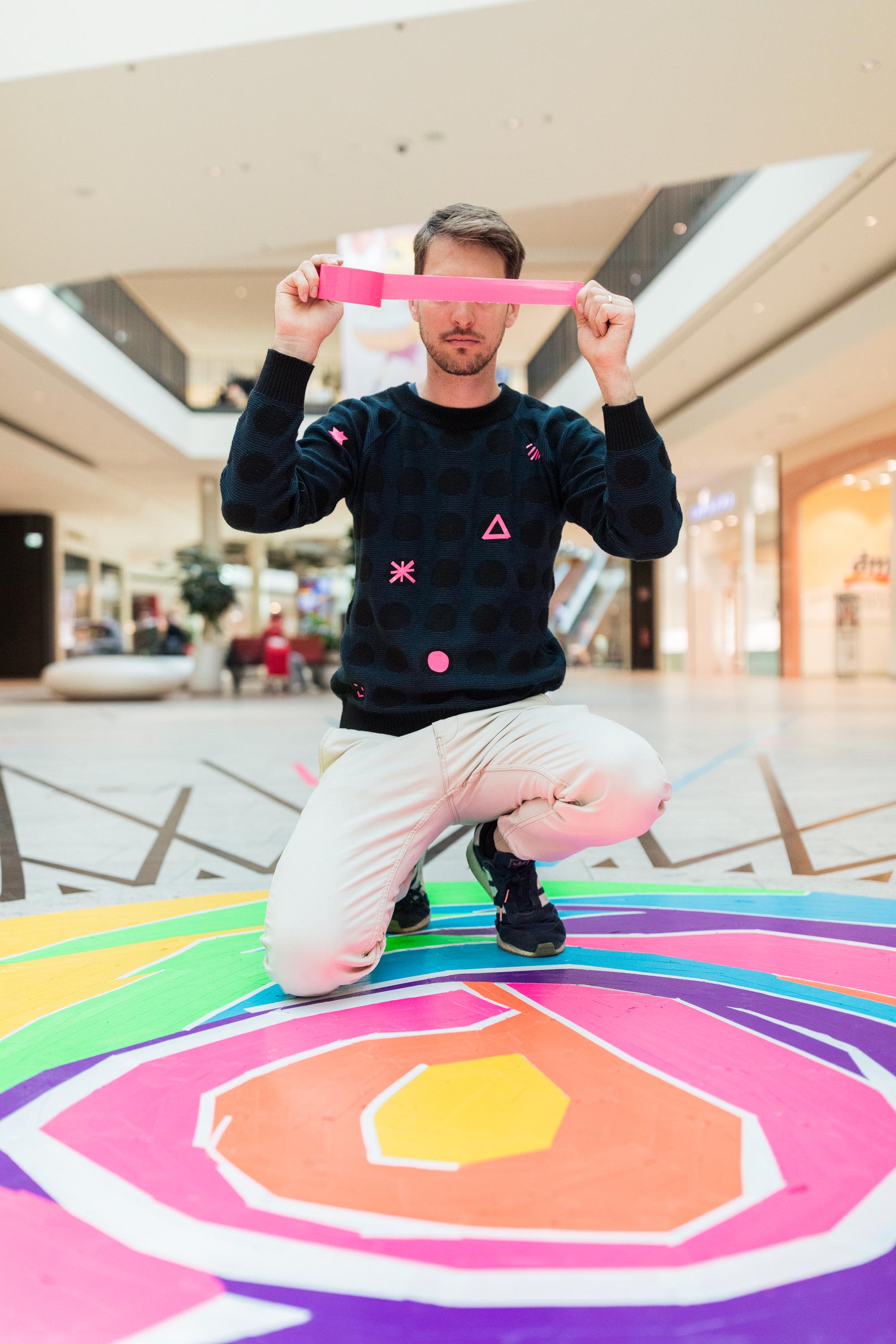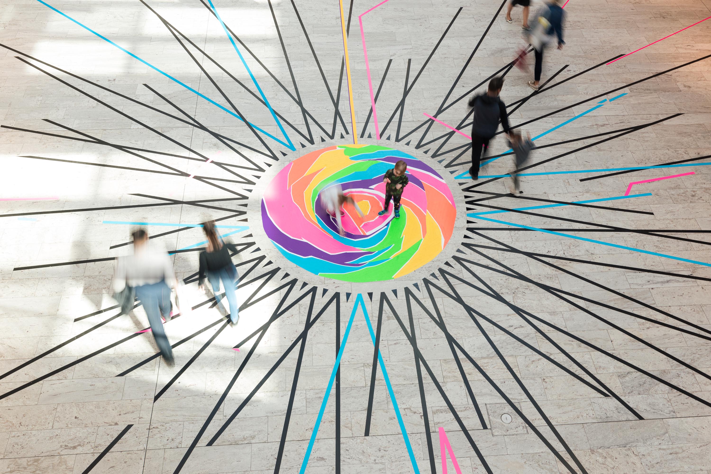 This floor instalation is entierly made with tape and was created for the Huma Eleven shopping mall in Vienna. Fotos by Derfritz